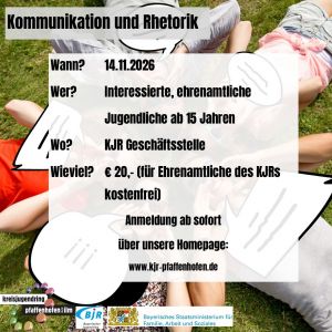 Im Herbst bieten wir einen Workshop rund um die Themen Kommunikation und Rhetorik an – speziell für alle, die sich in der Kinder- und Jugendarbeit engagieren. Gute Kommunikation ist der Schlüssel für gelingende Gruppenarbeit, klare Absprachen und ein respektvolles Miteinander.